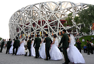 | 奧運后的國家體育場“鳥巢”成為許多大型活動的首選場地。圖為日前在這里舉辦的一場集體婚禮。新華社發(fā)(吳長青