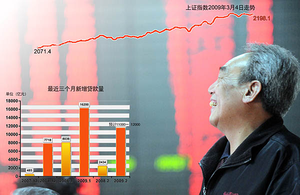2月份的最后一周,國(guó)內(nèi)銀行開始貸款沖刺,政府主導(dǎo)的項(xiàng)目貸款成了追捧的熱點(diǎn)。記者了解的數(shù)據(jù)顯示,2月份,工行新增人民幣貸款不到2000億元,中行新增人民幣貸款1900億元,建行新增人民幣貸款1600億元,四家國(guó)有銀行新增人民幣貸款超過6000億元,國(guó)內(nèi)金融機(jī)構(gòu)全部新增人民幣貸款在1.1至1.2萬(wàn)億元。