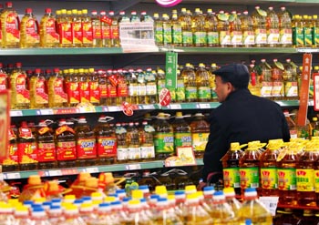 繼花生油漲價(jià)后,上海食用油市場(chǎng)的大豆油也啟動(dòng)新一輪漲價(jià)。記者在一家大型賣(mài)場(chǎng)了解到,目前部分品牌的大豆油已完成調(diào)價(jià),漲幅約10%,而其余品牌也計(jì)劃于近期將陸續(xù)上調(diào)零售價(jià)。圖為顧客在一家賣(mài)場(chǎng)內(nèi)選購(gòu)食用油。新華社記者