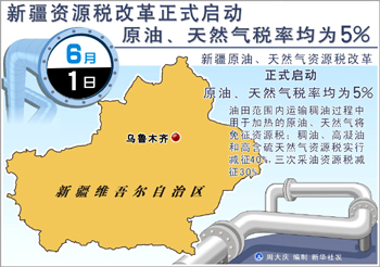 討論多年的資源稅改革方案率先在新疆浮出水面。6月2日,財政部、國家稅務(wù)總局聯(lián)合發(fā)布《新疆原油天然氣資源稅改革若干問題的規(guī)定》(以下簡稱《規(guī)定》)。根據(jù)《規(guī)定》,于6月1日正式啟動的新疆資源稅改革涉及原油和天然氣兩大資源,二者資源稅實行從價計征,稅率均為5%。 專家認(rèn)為,我國資源稅改革在新疆率先“破冰”,有利于完善資源產(chǎn)品價格形成機制、更好地引導(dǎo)經(jīng)濟結(jié)構(gòu)調(diào)整。盡管目前資源稅改革還沒在全國鋪開,但政府應(yīng)該把價格形成機制改革與稅費改革結(jié)合起來,建立有利于資源節(jié)約環(huán)境保護(hù)、促進(jìn)可持續(xù)發(fā)展的新機制。