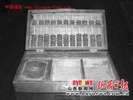 大德通繼任大掌柜王宗禹的隨身算盤,它將文房四寶與算盤的功能融為一體。 |