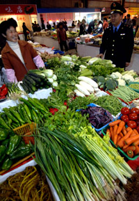 11月27日,工商執(zhí)法人員在浙江臺州市一家農(nóng)貿(mào)市場內(nèi)進(jìn)行檢查。 浙江省產(chǎn)品質(zhì)量和食品安全專項(xiàng)整治行動開展三個月來,已取得顯著成效。目前,全省縣城以上城市農(nóng)產(chǎn)品批發(fā)市場已100%納入質(zhì)量安全監(jiān)測范圍;5737家食品生產(chǎn)加工企業(yè)有5412家取得生產(chǎn)許可證,取證率達(dá)到94.3%。