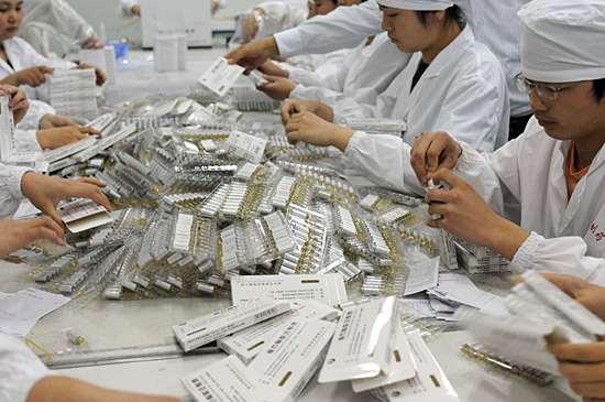 5月20日,江蘇常州方圓制藥有限公司正加緊生產(chǎn)災(zāi)區(qū)急需的抗生素。5月13日至今,該公司已捐贈價值300多萬元的藥品。