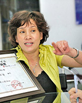。保梗福澳辏保苍拢保比,19歲的溫州姑娘章華妹從溫州市工商行政管理局領(lǐng)到了一份特殊的營(yíng)業(yè)執(zhí)照——工商證字第10101號(hào)。讓她想不到的是:這張用毛筆填寫(xiě)的并附有相片的營(yíng)業(yè)執(zhí)照,竟然成為了中國(guó)第一份個(gè)體工商業(yè)營(yíng)業(yè)執(zhí)照。她本人則成為了“中國(guó)第一個(gè)工商個(gè)體戶(hù)”。 這個(gè)執(zhí)照給章華妹帶來(lái)了不少榮譽(yù)。2004年11月4日,在“2004CCTV中國(guó)十大最具經(jīng)濟(jì)活力城市”揭曉頒獎(jiǎng)典禮上,溫州獲得“活力城市”獎(jiǎng)杯,章華妹和代表溫州市的另外四位嘉賓在頒獎(jiǎng)儀式上集體亮相。另四位是全國(guó)知名的企業(yè)家,章華妹做夢(mèng)也沒(méi)想到有一天能和他們一起代表溫州上臺(tái)領(lǐng)獎(jiǎng)。 現(xiàn)在的章華妹是“偉星”紐扣溫州總代理、華妹服裝輔料有限公司的法人代表。她的店鋪加上倉(cāng)庫(kù)已經(jīng)有200多平方米,主要做批發(fā),生意十分紅火。章華妹說(shuō),我現(xiàn)在還在干個(gè)體戶(hù),我會(huì)把個(gè)體戶(hù)一直干下去的,F(xiàn)在,我的兒子也在做生意,他比我幸運(yùn),個(gè)體經(jīng)營(yíng)環(huán)境和社會(huì)地位都比我那時(shí)強(qiáng)多了。