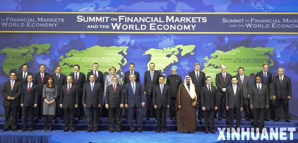 11月15日,中國國家主席胡錦濤在華盛頓出席二十國集團領(lǐng)導人金融市場和世界經(jīng)濟峰會。這是與會各國領(lǐng)導人及有關(guān)國際組織負責人集體合影。 新華社記者